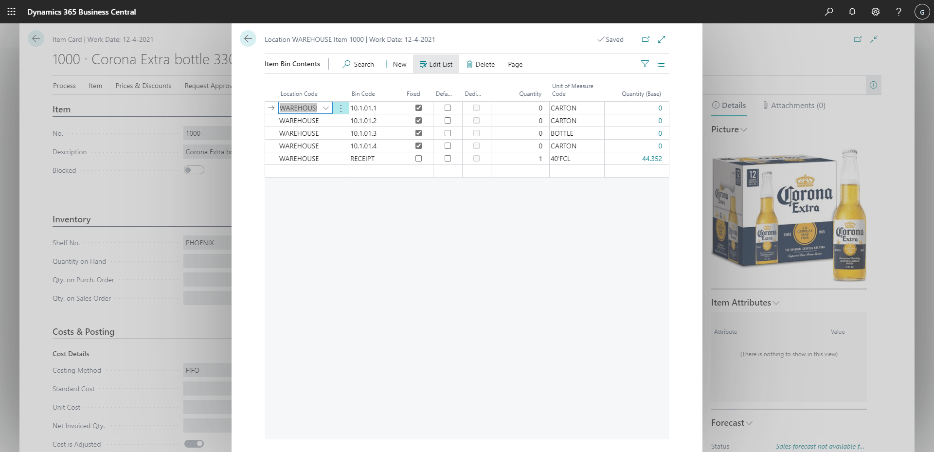 In this blog we will process the inbound process in our warehouse while purchasing a container of Corona Extra beer. We will follow the steps in Business Central according the Advanced Warehouse setup as described in our setup blog post.